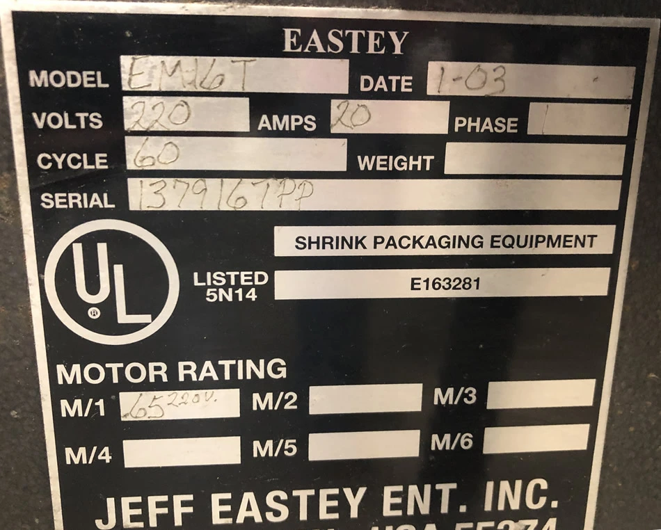 Eastey ET1608 Heat Shrink Tunnel (Used)